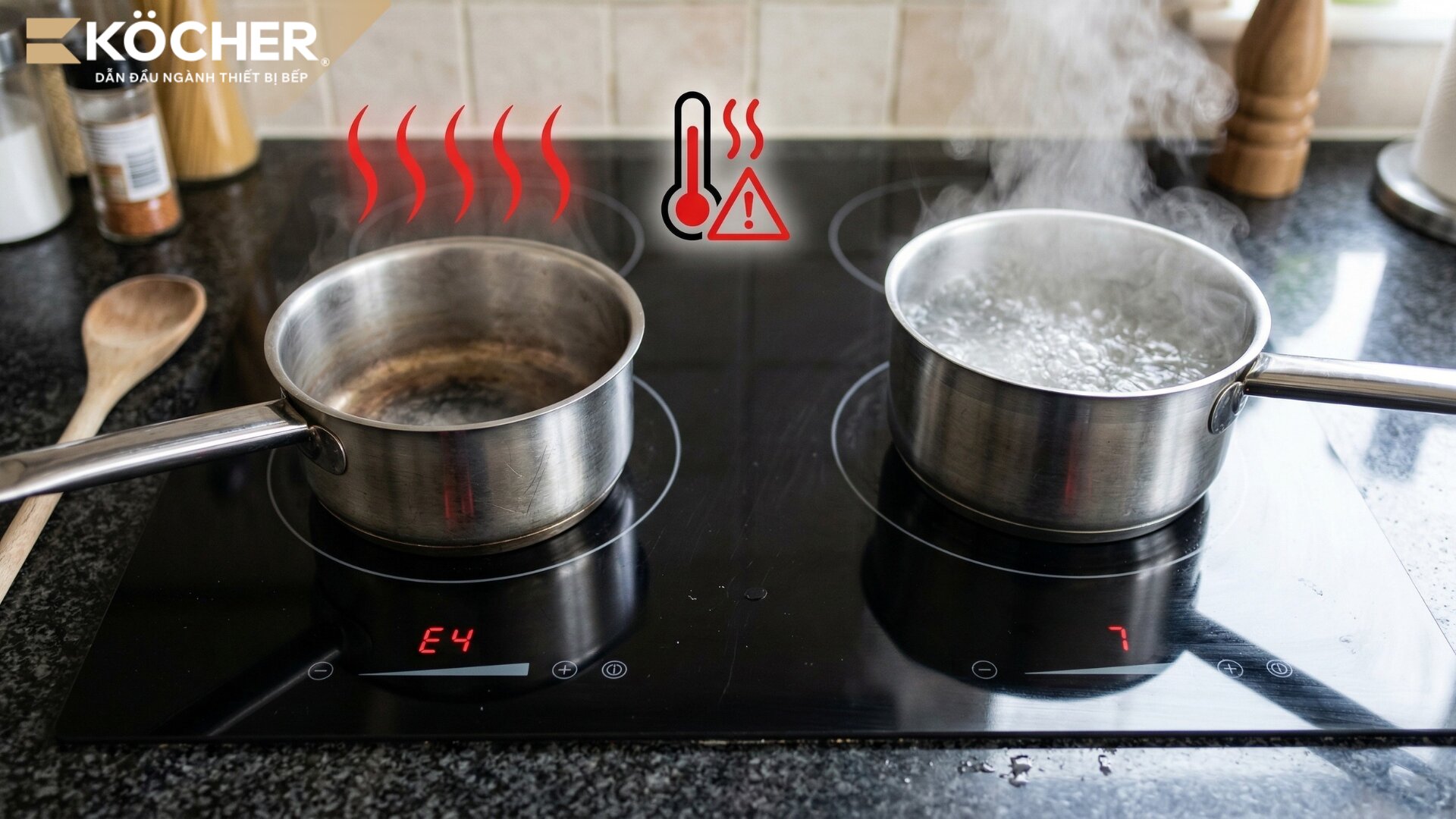 Nếu bếp thường xuyên gặp lỗi E4 do quá nhiệt, bạn có thể cân nhắc lựa chọn những dòng bếp từ có linh kiện và hệ thống tản nhiệt tốt hơn. Bạn có thể tham khảo các mẫu bếp của Köcher sử dụng mặt kính EuroKera (Pháp), mâm từ E.G.O (Đức) và công nghệ Inverter tiết kiệm điện, giúp bếp vận hành ổn định và hạn chế tình trạng quá nhiệt khi nấu.
