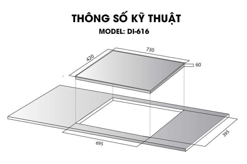 Mang đậm phong cách châu Âu hiện đại, DI-616 sở hữu mặt kính Keramik vát cạnh sang trọng, điều khiển cảm ứng Slider mượt mà cùng 9 mức công suất linh hoạt.