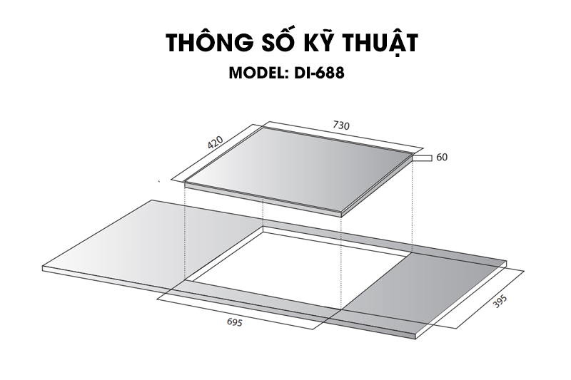 Bếp từ DI-688 mang thiết kế tinh tế với mặt kính Keramic vát cạnh sang trọng, điều khiển cảm ứng slider hiện đại. Trang bị công nghệ Inverter tiết kiệm điện, chức năng Booster tăng tốc nấu nhanh và chế độ sôi liu riu tiện lợi.