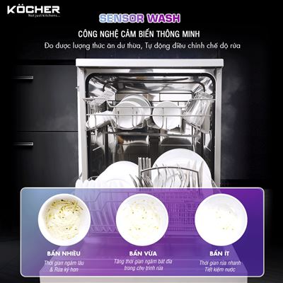 Máy rửa bát Kocher KDEU-8818 áp dụng công nghệ cảm biến mới giúp máy có thể đo được lượng thức ăn dư thừa, dầu mỡ hay là chất tẩy rửa còn tồn đọng trong nước từ đó tự động điều chỉnh lượng nước và điện năng phù hợp giúp tối ưu hóa quá trình làm sạch và diệt khuẩn cho bát đĩa.