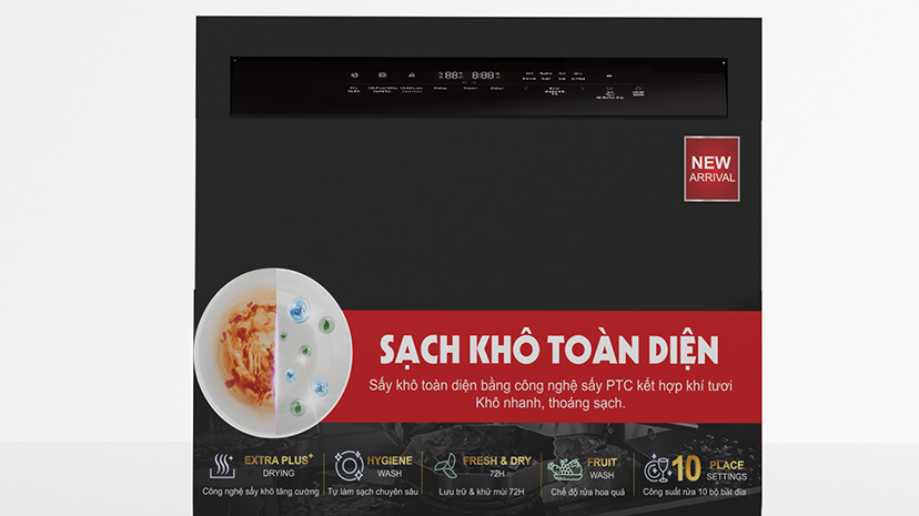 Sấy độc lập Dry: Cho phép bật riêng để sấy lại bát đĩa bất cứ lúc nào mà không cần rửa lại từ đầu, hoặc kết hợp linh hoạt với các chu trình rửa khác – đặc biệt phù hợp khi bát đĩa chưa kịp lấy ra ngay.