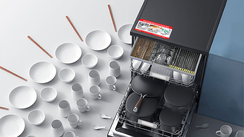 Dễ dàng sử dụng: Người dùng có thể nhanh chóng xếp đặt đồ dùng vào máy mà không gặp khó khăn, giúp tối đa hóa dung tích 17 bộ bát đĩa.