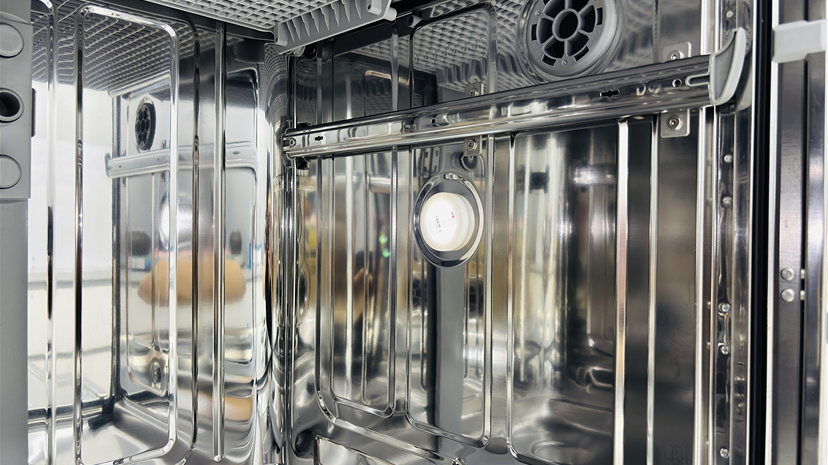 Khoang rửa của máy được chế tạo từ Inox 304 và Inox 430 cao cấp, nổi bật với khả năng chống gỉ sét, chống ăn mòn vượt trội, đảm bảo độ bền bỉ theo thời gian. Chất liệu cánh cửa bằng thép tấm SPCC và khu vực điều khiển bằng mặt kính đen không chỉ mang lại vẻ ngoài sang trọng mà còn dễ dàng vệ sinh, giữ cho bếp luôn sáng bóng như mới.