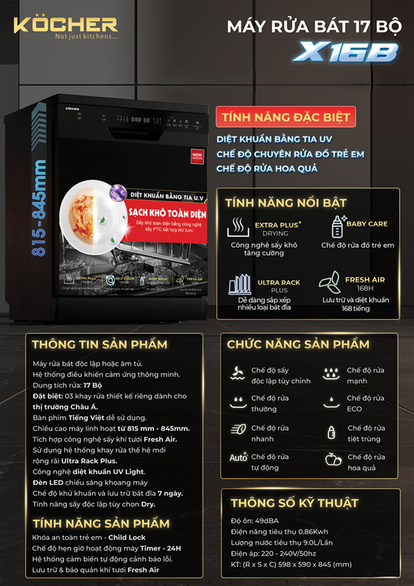 Nếu những băn khoăn về bát đĩa ẩm mốc, thiếu không gian tiệt khuẩn hay sự mệt mỏi khi rửa chén thủ công vẫn còn đó, thì Köcher X16B chính là câu trả lời mang tính cách mạng.