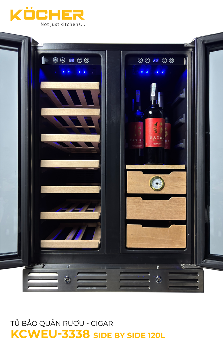Trong thế giới của những người sành điệu với đam mê thưởng thức rượu vang và cigar, việc bảo quản đúng cách là yếu tố vô cùng quan trọng. Hiểu rõ nhu cầu này, Hãng Köcher mang đến tủ bảo quản rượu vang – cigar KCWEU-3338, một siêu phẩm kết hợp của sự tiện nghi và đẳng cấp, đáp ứng hoàn hảo nhu cầu của người sử dụng.