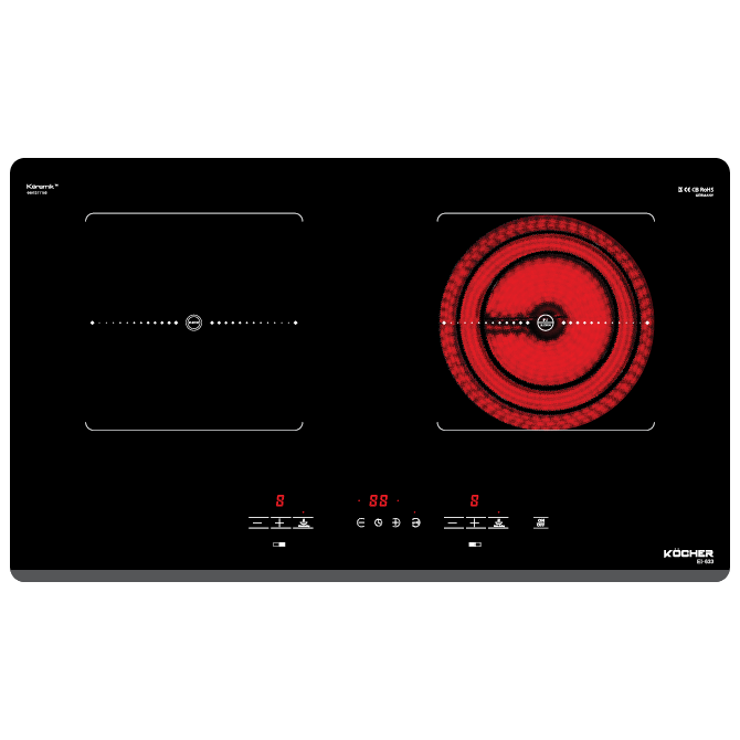 Bếp điện từ EI-633 sở hữu thiết kế tinh gọn, mặt kính Keramic sang trọng và bảng điều khiển cảm ứng nhạy