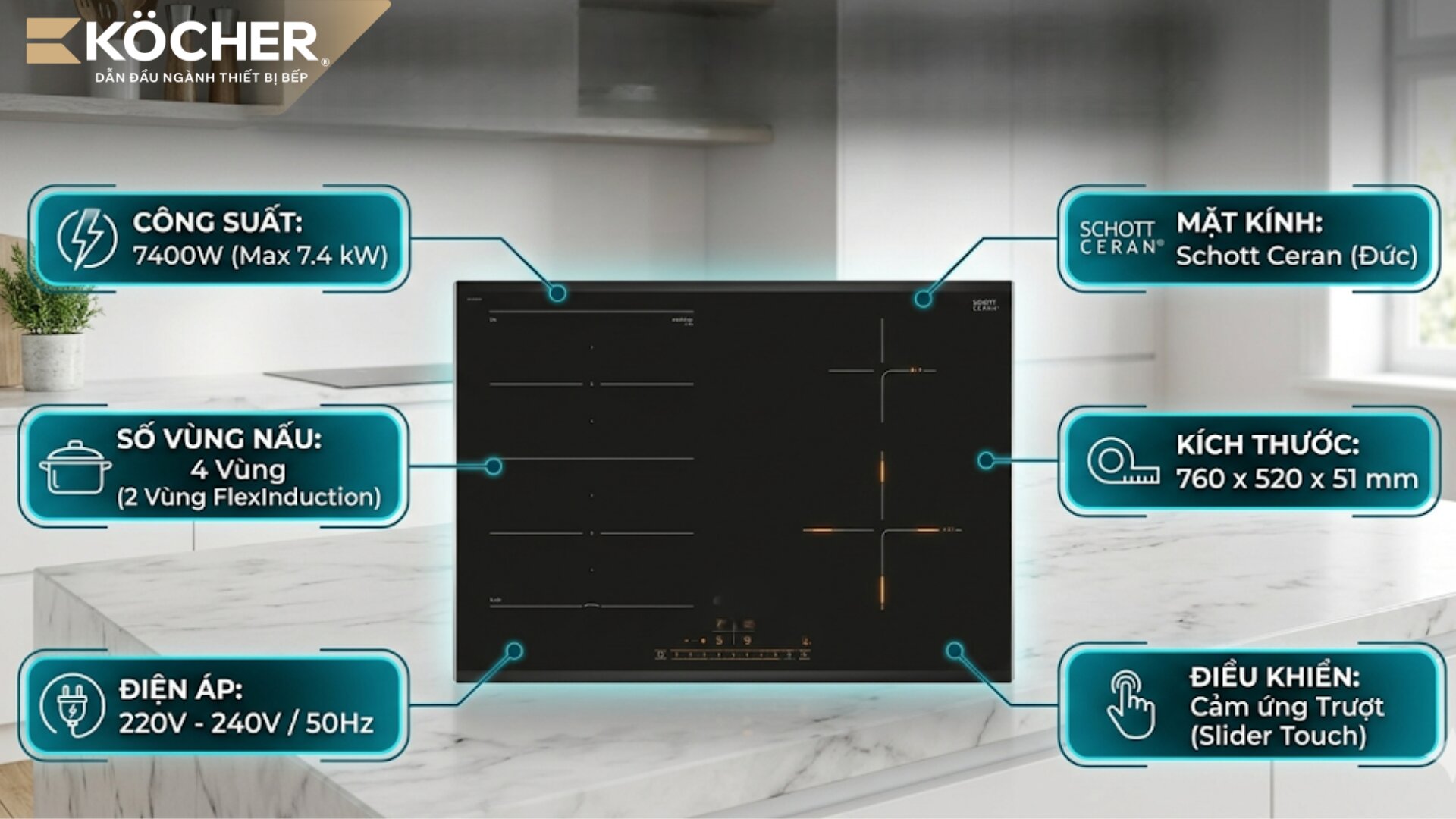 Nếu bạn đang tìm kiếm bếp từ chất lượng cao, hãy tham khảo sản phẩm của Köcher tại đây. Với sự công khai minh bạch về các thông số kỹ thuật của bếp từ, từ chất liệu mâm từ, kiểu bo mạch đến xuất xứ từng linh kiện, Köcher tự hào mang đến giải pháp nấu nướng bền bỉ và đẳng cấp cho gia đình bạn.